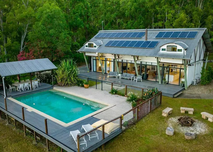 När du bor i The Farm On Razorback Ridge Villa Montville kan du enkelt nå Kondalilla National Park, som ligger ungefär 10 minuter bort med bil. Villan har en parkering och en uteplats med utsikt över bergen.